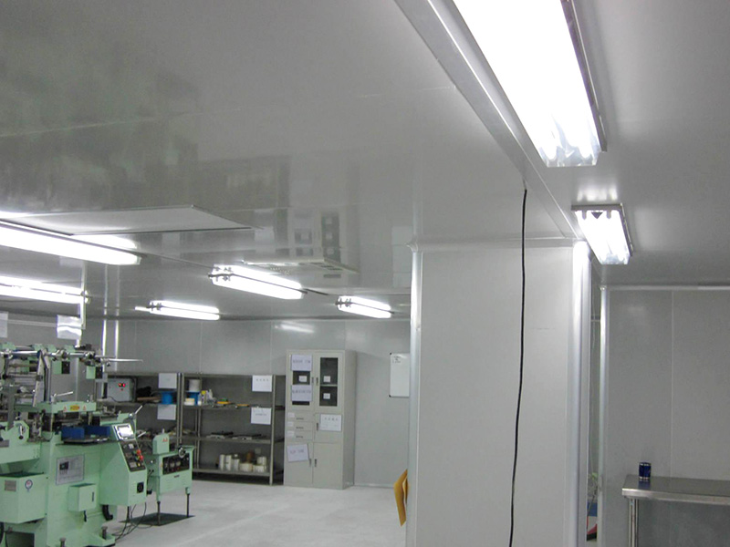 在凈化室設計方案中,一切表層原材料務必能抵御微生物菌種生長發育,不允許選用有機材料及木制家具。在清潔地區,墻、路面、裝修吊頂的內表層務必光潔,無裂紋,無微小細孔,不起塵,易清理,可承受凈化室日常應用的消毒液。現階段藥廠的新項目均選用彩鋼瓦,并根據頂弧形和墻弧形銜接,不容易積灰,也存有部分非立即生產制造地區如清潔樓梯口的一部分墻壁選用環氧樹脂墻面乳膠漆也是合乎GMP規定的。